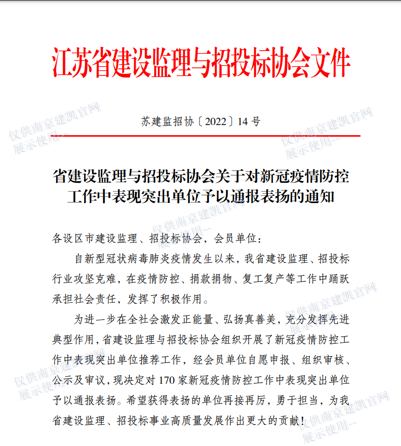 恭喜我司榮獲省建設監(jiān)理與招投標協(xié)會授予《新冠疫情防控工作中表現突出單位的通報表揚》