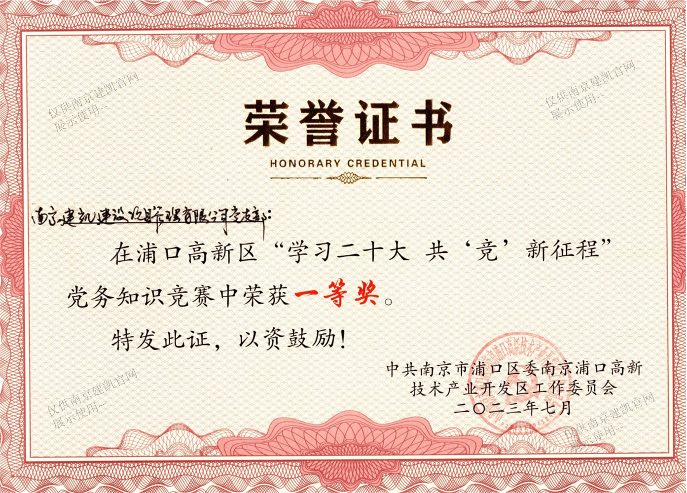 熱烈祝賀我司黨支部榮獲浦口高新區(qū)“學(xué)習(xí)二十大 共競(jìng)新征程”黨務(wù)知識(shí)競(jìng)賽一等獎(jiǎng)