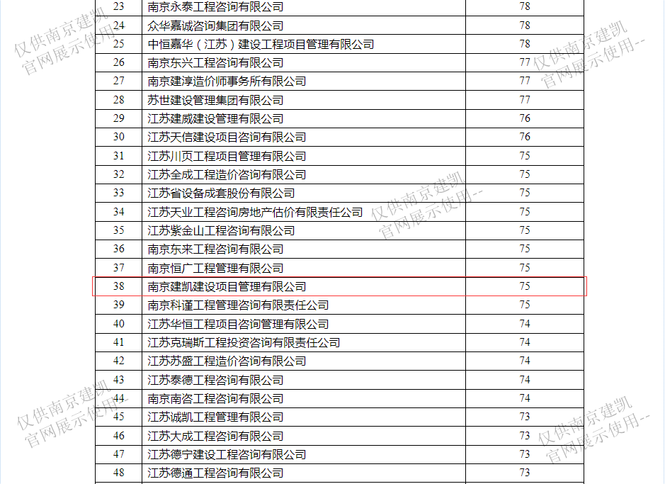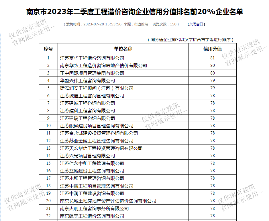 恭喜我司入選“南京市2023年二季度工程造價(jià)咨詢企業(yè)信用分值排名前20%企業(yè)名單”