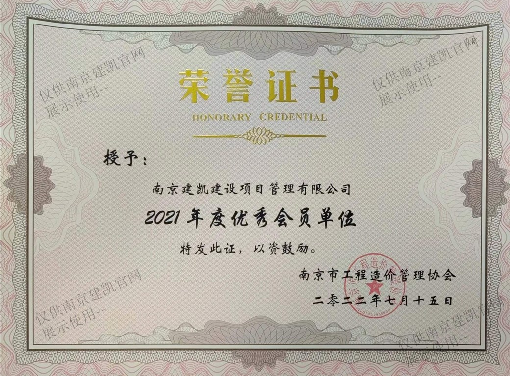 祝賀我司榮獲南京市工程造價管理協(xié)會“2021年度優(yōu)秀會員單位”