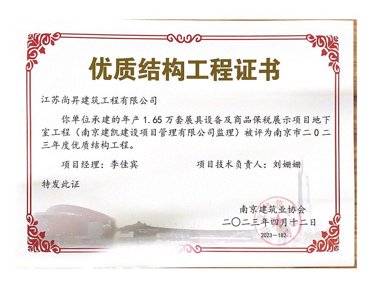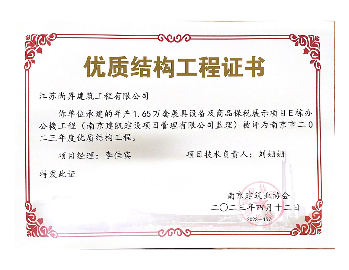 年產(chǎn)1.65萬套展具設備及商品保稅展示項榮獲“2023年度優(yōu)質(zhì)結(jié)構(gòu)工程”