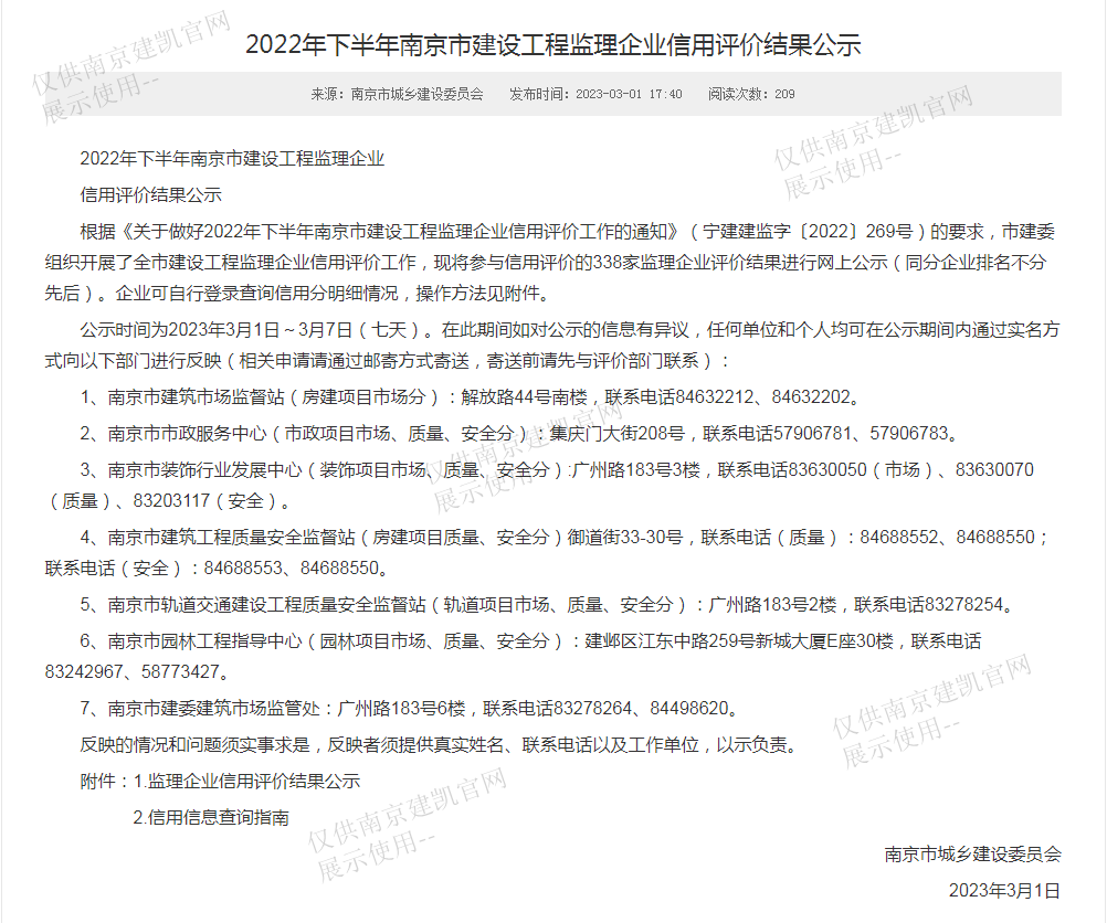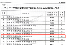 熱烈祝賀我司招標(biāo)代理機(jī)構(gòu)在2023年第一季度南京市建設(shè)工程招標(biāo)代理機(jī)構(gòu)信用評(píng)價(jià)綜合得分89.30分,全市排名第八名
