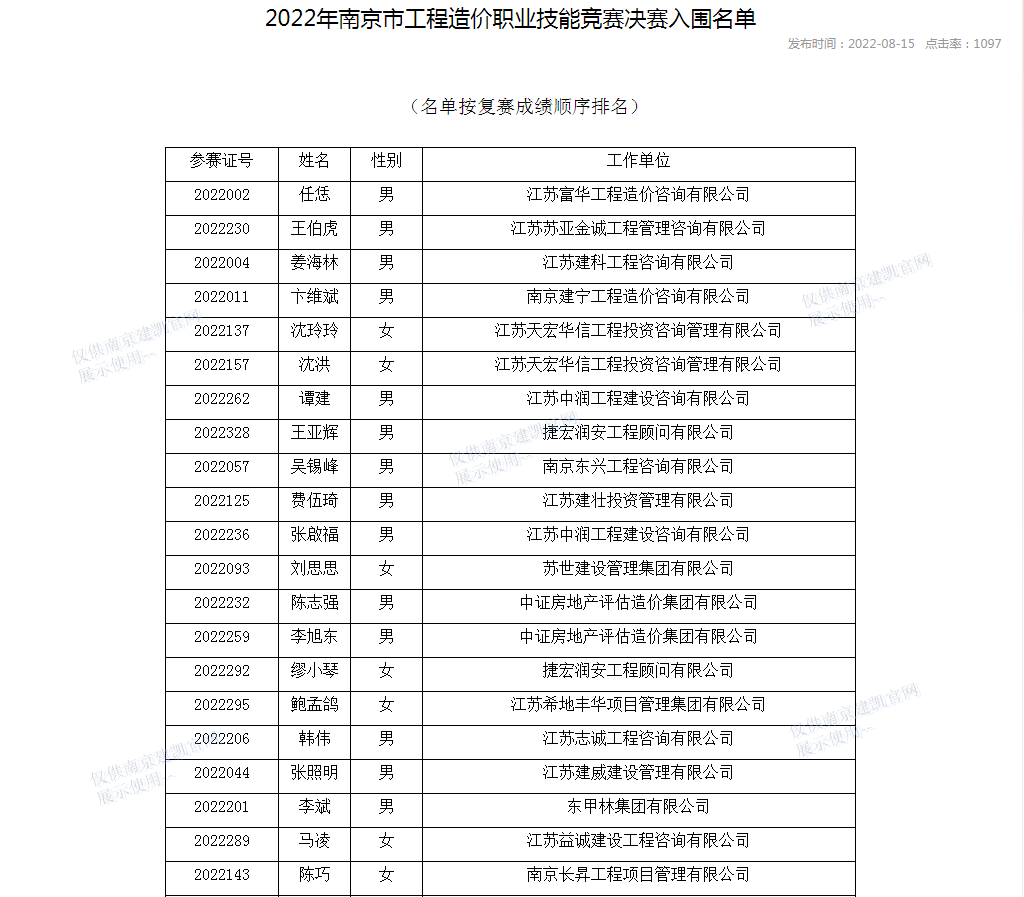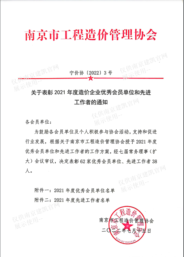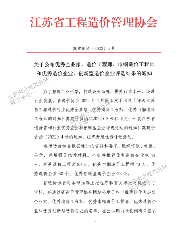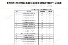 恭喜我司造價部入選“南京市2022年二季度工程造價咨詢企業(yè)信用分值排名前20%企業(yè)名單”