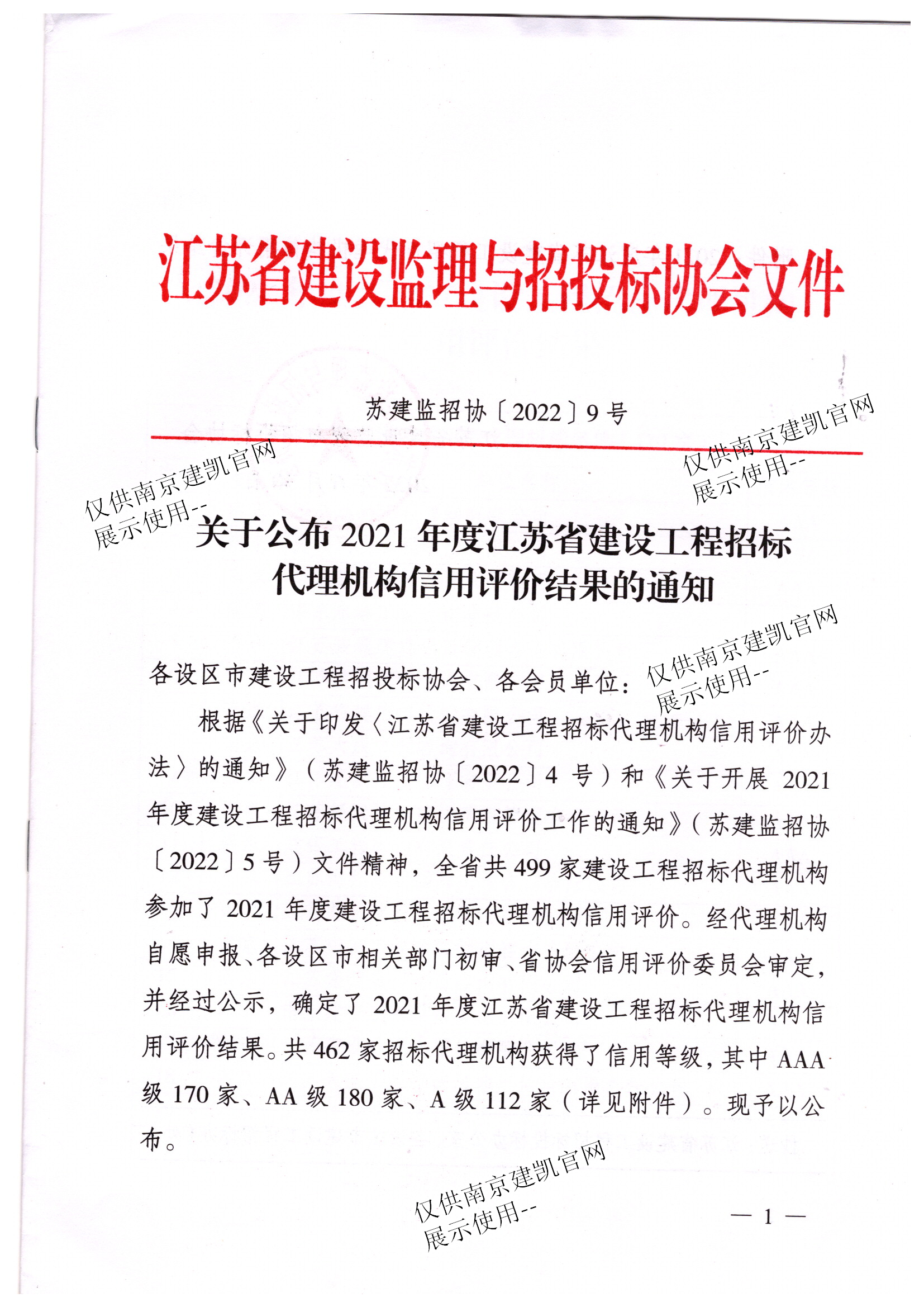 恭喜我司招標(biāo)代理部在2021年度建設(shè)工程招標(biāo)代理機構(gòu)信用評價中榮獲“AAA”信用等級