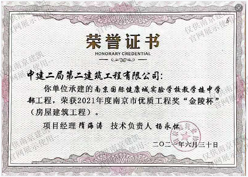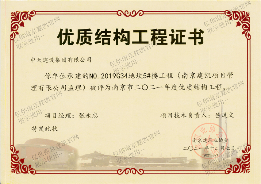 南京市二O二一年度優(yōu)質(zhì)結(jié)構(gòu)工程